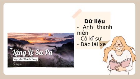 Xem dữ liệu- đoán văn bản Dữ liệu - Anh thanh niên - Cô kĩ sư - Bác lái xe Dữ liệu - Mon - Mên - Chim chìa vôi Dữ liệu - Vườn hoa - Cửa sổ - Người bố- người con