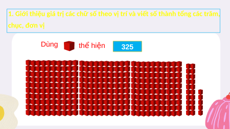 1. Giới thiệu giá trị các chữ số theo vị trí và viết số thành tổng các trăm,