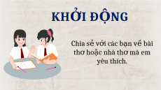 HỌC SINH ĐẾN VỚI BÀI HỌC MỚI NGÀY HÔM NAY! KHỞI ĐỘNG Chia s v ẻ i cá ớ c b n v ạ bà ề i th ho ơ c nhà ặ th mà ơ em yêu thích. Huy Cận Trần Đăng Khoa Xuân Diệu Bài 7. TH 8 C Ơ H V Ữ À TH T Ơ DO Ự Vi t ế Viết đo n văn g ạ hi l i c ạ m ng ả hĩ v m ề t bài th ộ tám ch ơ ữ