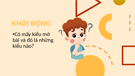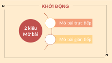 KHỞI ĐỘNG •Có mấy kiểu mở bài và đó là những kiểu nào? “ KHỞI ĐỘNG Mở bài trực tiếp 2 kiểu Mở bài Mở bài gián tiếp ”