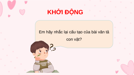 Em hãy nhắc lại cấu tạo của bài văn tả con vật?