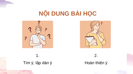 (Tìm ý, lập dàn ý) NỘI DUNG BÀI HỌC 1. 2. Tìm ý, lập dàn ý Hoàn thiện ý