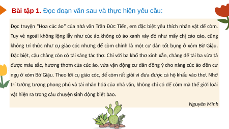 Bài tập 1. Đọc đoạn văn sau và thực hiện yêu cầu: