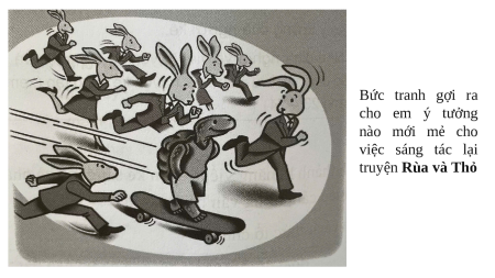 Bức tranh gợi ra cho em ý tưởng nào mới mẻ cho việc sáng tác lại truyện Rùa và Thỏ Rùa và thỏ