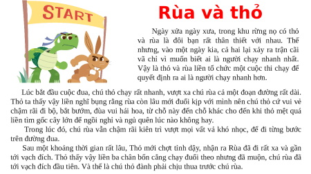 Vậy là thỏ và rùa liền tổ chức một cuộc thi chạy để