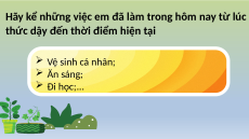 thức dậy đến thời điểm hiện tại Vệ sinh cá nhân; Ăn sáng; Đi học;...