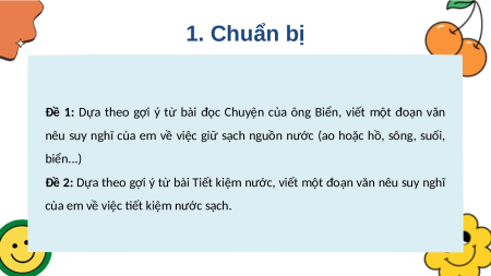 BÀI VIẾT 2. NƯỚC SẠCH NỘI DUNG BÀI HỌC Chuẩn bị Viết đoạn văn