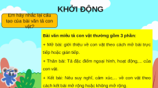 + Thân bài: Tả đặc điểm ngoại hình, hoạt động,... của con vật.