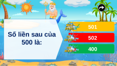 TOÁN 2 PLAY KHỞI ĐỘNG 1 2 3 4 5 EXIT 13 4 1 3 5 5 2 2 A 501 Số liền sau của B 502 500 là: C 400
