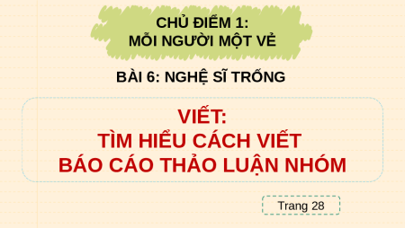 Giáo án Powerpoint Viết: Tìm hiểu cách viết báo cáo thảo luận nhóm (trang 28) Tiếng việt lớp 4 Kết nối tri thức