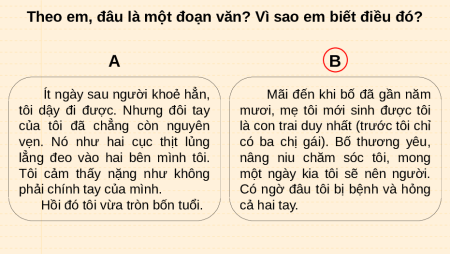 Theo em, đâu là một đoạn văn? Vì sao em biết điều đó? A B