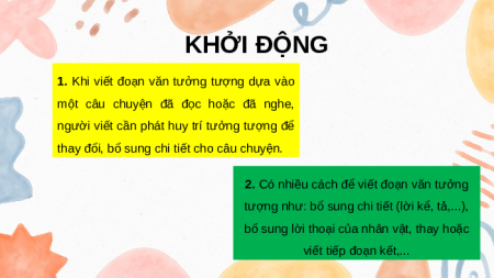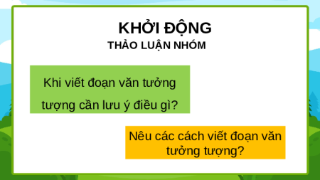 Nêu các cách viết đoạn văn tưởng tượng? KHỞI ĐỘNG