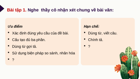 Bài tập 1. Nghe thầy cô nhận xét chung về bài văn: