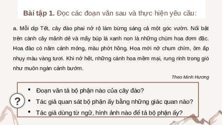 a. Mỗi dịp Tết, cây đào phai nở rộ làm bừng sáng cả một góc vườn. Nổi bật