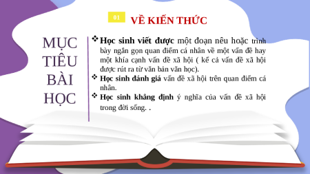 phục để trình bày một vấn đề xã hội được rút ra từ tác phẩm BÀI văn học. 02 HỌC VỀ PHẨM CHẤT