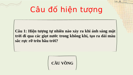 sắc rực rỡ trên bầu trời? CẦU VỒNG Câu đố hiện tượng