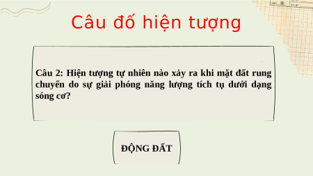 Câu 2: Hiện tượng tự nhiên nào xảy ra khi mặt đất rung