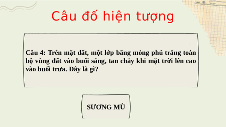 CHÀO MỪNG CÁC EM ĐẾN VỚI TIẾT HỌC HÔM NAY! Câu đố hiện tượng