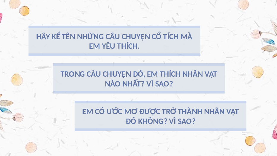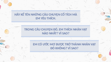 HÃY KỂ TÊN NHỮNG CÂU CHUYỆN CỔ TÍCH MÀ EM YÊU THÍCH.