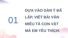 01 LẬP, VIẾT BÀI VĂN MIÊU TẢ CON VẬT MÀ EM YÊU THÍCH.