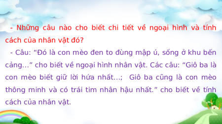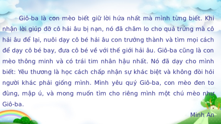 đùng, mập ú, và mong muốn tìm cho riêng mình một chú mèo như Giô-ba. Minh An 2. Trả lời câu hỏi: