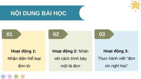 Hoạt động 2: Nhận Hoạt động 3: Nhận diện thể loại xét cách trình bày Thực hành viết “đơn đơn từ một lá đơn xin nghỉ học”