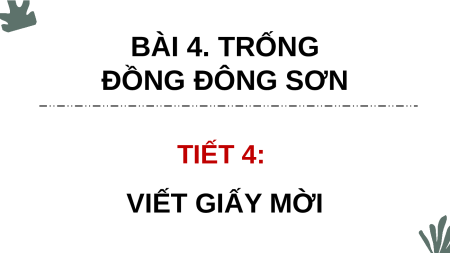 mời, thông tin về sự kiện,… BÀI 4. TRỐNG ĐỒNG ĐÔNG SƠN TIẾT 4: VIẾT GIẤY MỜI