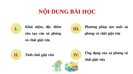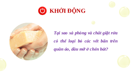 quần áo, dầu mỡ ở chén bát? BÀI 2: XÀ PHÒNG VÀ CHẤT GIẶT RỬA NỘI DUNG BÀI HỌC I.