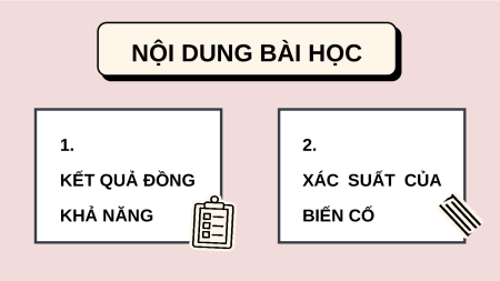 BÀI 2. XÁC SUẤT CỦA BIẾN CỐ NỘI DUNG BÀI HỌC 1. 2. KẾT QUẢ ĐỒNG XÁC SUẤT CỦA KHẢ NĂNG BIẾN CỐ