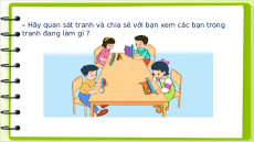 - Hãy quan sát tranh và chia sẻ với bạn xem các bạn trong