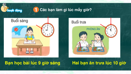 Bạn học bài lúc 9 giờ sáng Hai bạn ăn trưa lúc 10 giờ