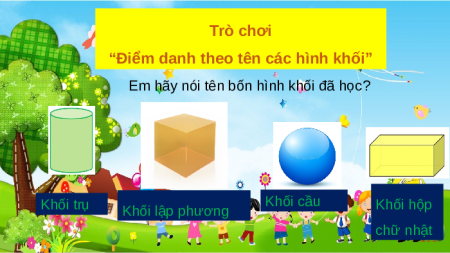 Em hãy nói tên bốn hình khối đã học? Khối trụ Khối cầu Khối lập phương Khối hộp chữ nhật