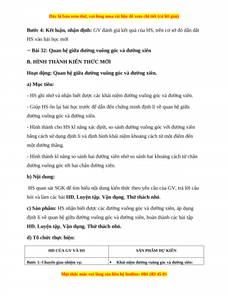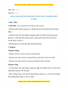 BÀI 32. QUAN HỆ GIỮA ĐƯỜNG VUÔNG GÓC VÀ ĐƯỜNG XIÊN