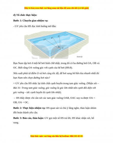 OC. Biết rằng OA vuông góc với cạnh của bể bơi (H9.8).