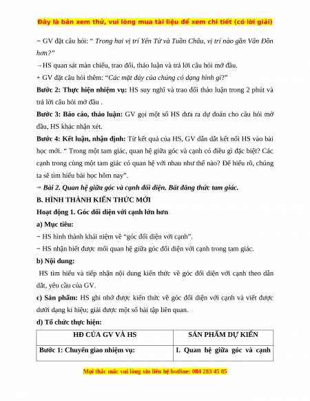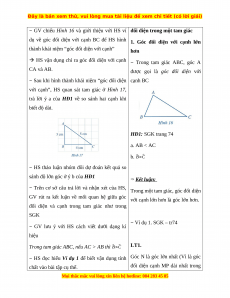 − HS hình thành khái niệm về “góc đối diện với cạnh”.