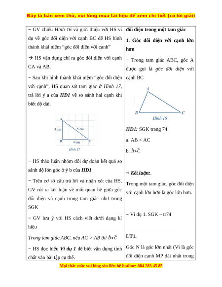Giáo án Quan hệ giữa góc và cạnh đối diện. Bất đẳng thức tam giác Toán 7 Cánh diều