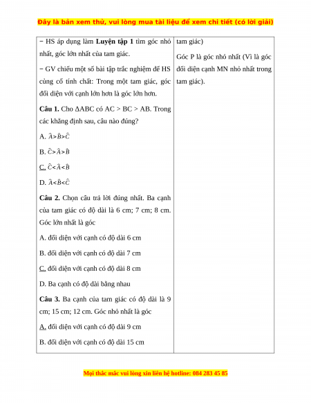 Bài 2. Quan hệ giữa góc và cạnh đối diện. Bất đẳng thức tam giác.