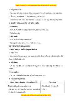 2. V ph ề ẩm ch t ấ - Tham gia tích c c ự các ho t ạ đ ng nhóm ộ phù h p v ợ i ớ kh năng c ả a ủ b n t ả hân. - Cẩn th n, t ậ rung th c và t ự h c ự hi n yêu ệ c u bài ầ h c. ọ - Có ni m ề say mê, h ng t ứ hú v i ớ vi c khám ệ phá và h c t ọ p khoa ậ h c t ọ nhi ự ên. II. THIẾT B D Ị ẠY H C Ọ VÀ H C Ọ LI U Ệ 1. Giáo viên: - SGK, SGV, SBT khoa h c t ọ nhi ự ên 8, k ho ế ch ạ bài d y ạ . - Phi u h ế c t ọ p. ậ 2. H c ọ sinh: - SGK, SBT khoa h c ọ t nhi ự ên 8. - Đ c nghi ọ ên c u ứ và tìm hi u t ể rư c ớ bài nhà. ở III. TI N Ế TRÌNH D Y Ạ H C Ọ 1. Hoạt đ ng 1 ộ : Kh i ở đ ng ( ộ M đ ở u) ầ a) M c t ụ iêu: - T o