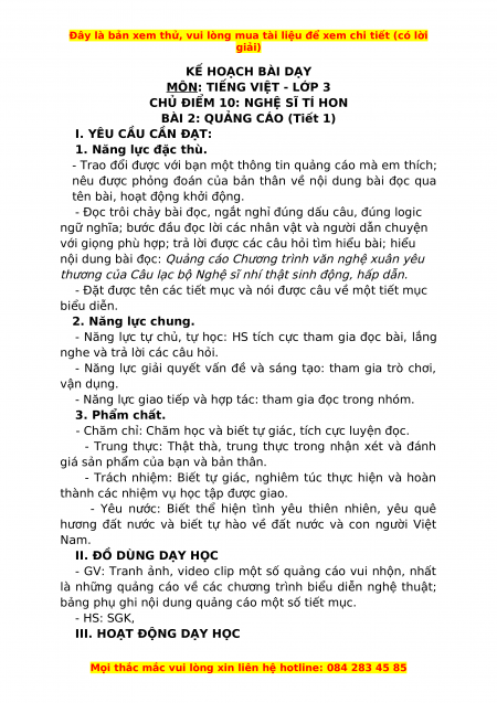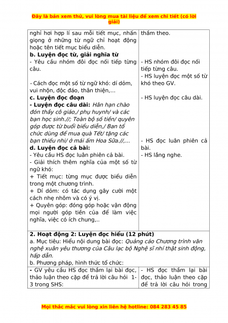a. Mục tiêu: Hiểu nội dung bài đọc: Quảng cáo Chương trình văn