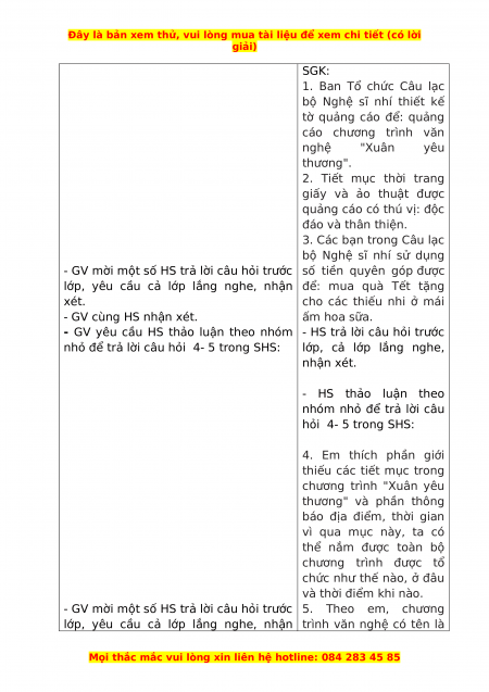 nhóm nhỏ để trả lời câu hỏi 4- 5 trong SHS: 4. Em thích phần giới