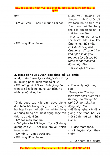 b. Phương pháp, hình thức tổ chức: a. Đọc mẫu
