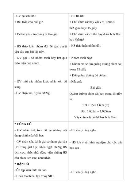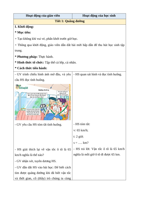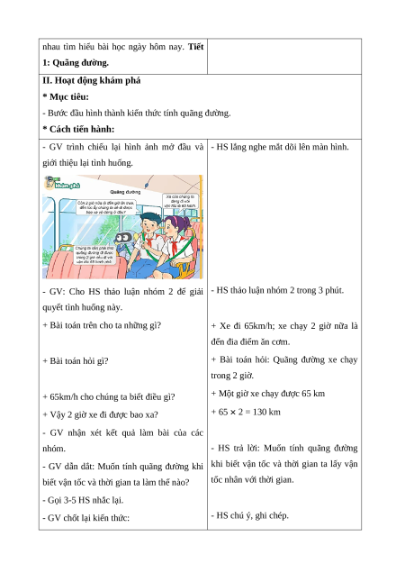 - Bước đầu hình thành kiến thức tính quãng đường. * Cách tiến hành: