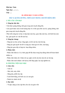 BÀI 74. QUÃNG ĐƯỜNG, THỜI GIAN TRONG CHUYỂN ĐỘNG ĐỀU