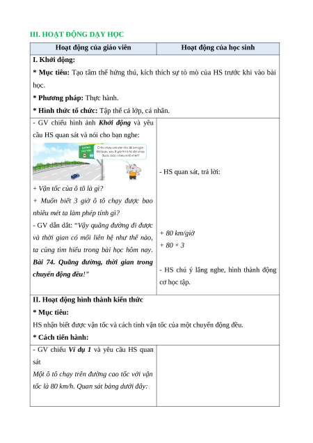 - GV dẫn dắt: “Vậy quãng đường đi được + 80 km/giờ