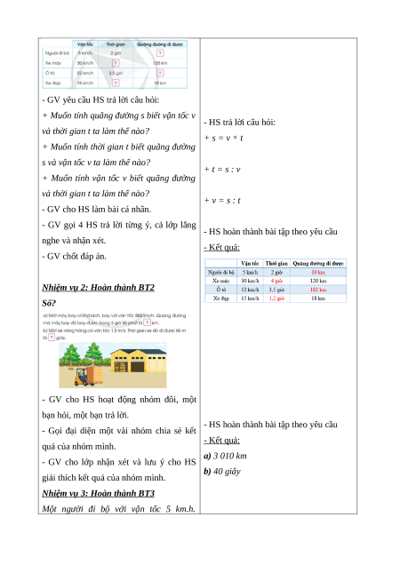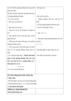 - Giải quyết được một số tình huống thực tế có liên quan đến vận tốc, quãng đường, thời