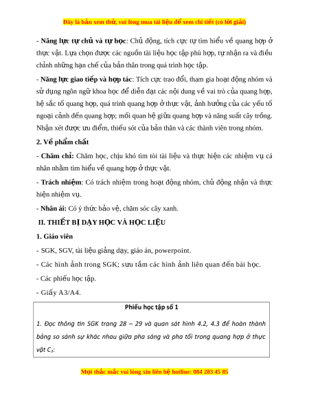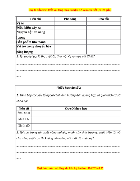 Đây là bản xem th , vu ử i lòng mua tài li u ệ đ xe ể m chi ti t (c ế ó l i ờ gi i ả ) Tiêu chi Pha sáng Pha t i ố Vị tri Đi u ki ề n x ệ y ra ả Nguyên li u và năng ệ lư ng ợ Sản phẩm tạo thành