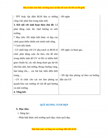 QUÊ HƯƠNG VÀ MÔI TRƯỜNG A. Mục tiêu: