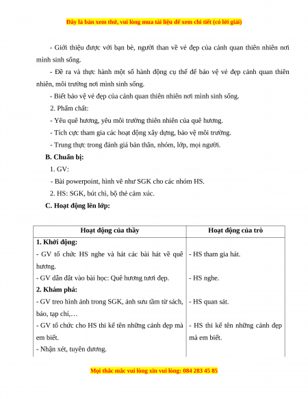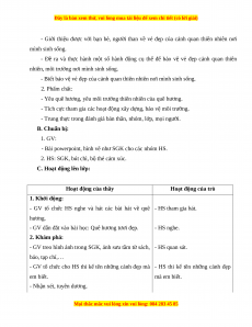 - Biết bảo vệ vẻ đẹp của cảnh quan thiên nhiên nơi mình sinh sống. 2. Phẩm chất: