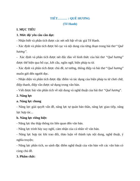 - Viết được bài văn phân tích về nội dung và nghệ thuật của bài thơ “Quê hương”. 2. Năng lực a. Năng lực chung