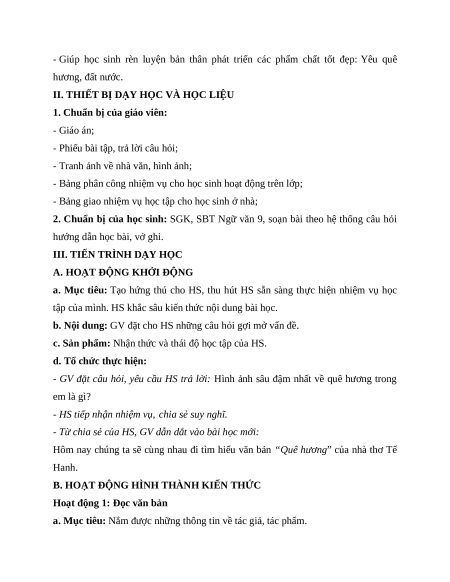 Giáo án Quê hương Ngữ Văn 9 Chân trời sáng tạo